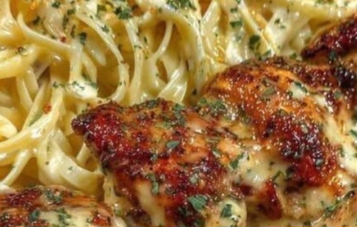 Polpette di pollo cremose all’aglio e parmigiano con fettuccine