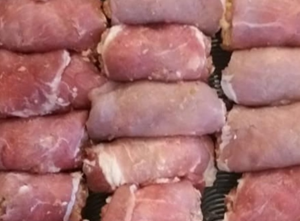 Klasszikus baconbe tekert töltött hústekercs (sütőben)